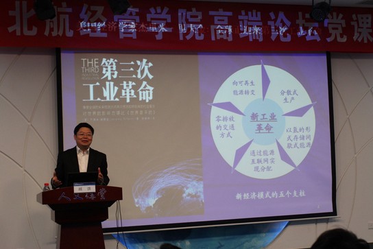 2013年10月18日晚18时,工信部规划司副司长顾强先生做客北航经管学院高端论坛,为同学们带来题为《新一轮科技和产业革命与中国的机遇挑战》的精彩讲座。经管学院院长王惠文教授、副院长王晶教授、党委副书记高翔老师、研究生指导主任牟晖老师、2011级辅导员胡婷婷出席了本次讲座,同时经管学院2011级本科生和二级党校学员积也极参加到本次讲座中来。