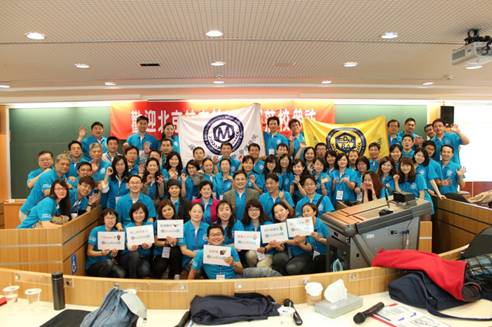 2013年4月29日-5月6日,北航经济管理学院30余名MBA师生赴台湾进行了为期8天的交流学习。此次北航MBA教育中心应台湾科技大学管理学院的邀请,由北航经管学院周宁副院长带队、企业案例中心欧阳桃花主任、MBA教育中心秦中峰副主任及29名MBA学生共同参与了台湾科技大学举办的“2013第一届管院杯海峡两岸案例竞赛”、台湾政治大学举办的“2013EMBA商管联盟高峰会暨商管杯个案论剑”等多个活动,并斩获中华组银奖。
