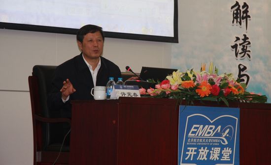 2012年10月21日,国家统计局许宪春副局长为北航经管学院高端论坛暨EMBA开放课堂做题为《重要统计指标解读与当前宏观经济形势分析》的专题报告。出席报告会的领导有经管学院院长王惠文教授、学术委员会委员任若恩教授,经管学院研究生指导主任牟晖老师、金融系主任赵尚梅老师等。本次报告会由北航经济管理学院院长王惠文教授主持。