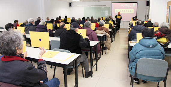 为学习脑波操作,胡教授又带领大家进行黄卡练习,以期达到“α脑波生活理念”的实现。在场的老人们每人拿着黄卡认真地听着,实实在在地练着,而主动创造好心情是大家的动力。