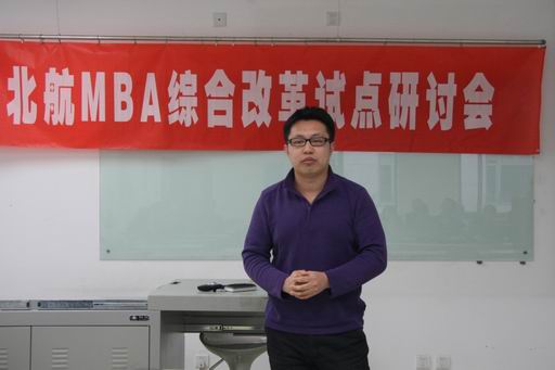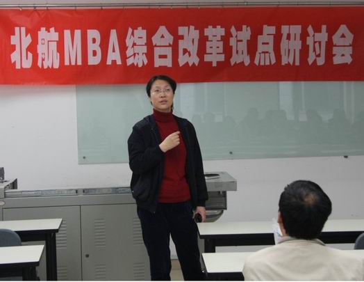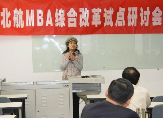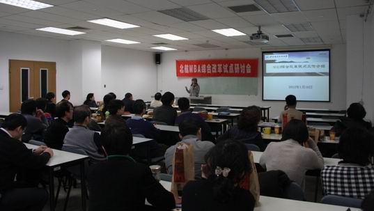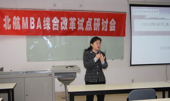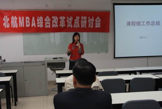 2012年1月10日,北航经管学院召开了MBA综合改革试点研讨会。会议由周宁副院长主持,院党委书记刘志新教授、院长助理于颖教授、MBA教育中心主任苏文平副教授、副主任武欣副教授、副主任柏满迎教授、案例中心主任欧阳桃花教授、副主任潘立新副教授以及全院40多名教师参加了研讨会。