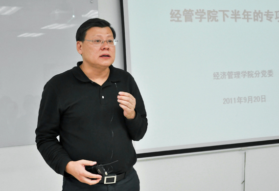 会上,王惠文院长传达了学校暑期工作会精神,并通报了学院各部门上半年开展的主要工作和本学期工作安排。在谈到本科生培养计划时,重点介绍了沙河校区本科生的学习生活情况,并倡议学院教师给学生更多的关注,通过讲座和学生辅导等方式增进与学生的沟通和了解,加强学生对教师和学院的情感联系。案例编写方面,学院共有5篇案例初步入选第二届全国案例百优评比,王院长向入围的教师表示祝贺,并对参与开发原创性案例的教师表示感谢;科研方面,学院共有15项国家自然科学基金项目获批,王院长鼓励更多的教师参与基金申请,不断开拓科研领域。