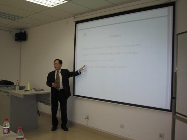 2009年5月18日下午15:00在新主楼A1028,台湾大学经济系王泓仁教授为经济管理学院的广大师生做了一场关于随机前沿模型基本理论和应用的精彩报告。