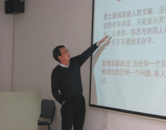本次讲座座无虚席,就连后排的走廊上也挤满了慕名而来的学院老师和各年级同学。黄海军教授首先引用亚里士多德的名言,对广大的研究生同学做出了这样的要求:要从“形”和“术”,上升到“学”。然后他又通过基础研究的重要性,阅读与使用文献,如何使用教学工具,如何写规范的学术论文,如何投稿,如何做科学工作的准备等方面对在座的听众同学进行了深刻的指导。最后,他还跟大家分享了他的研究《城市交通现状的研究》,并鼓励同学们积极探索新的研究方向。黄海军教授用他幽默的语言和富有激情的讲说引来了同学们的阵阵笑声。两个半小时的讲座在热烈的氛围中很快就过去了,现场人员收获的不仅是针对研究生的学习指导,更是一次难得的学术欣赏机会。