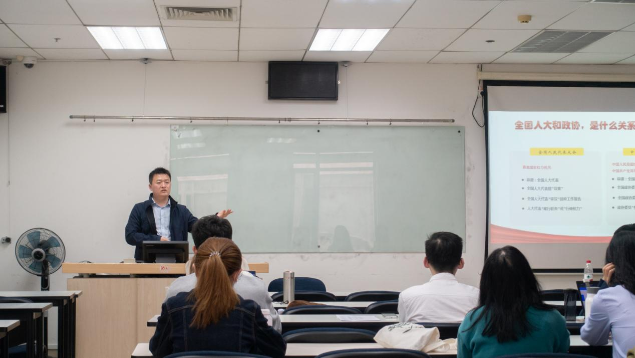高超老师做题为“聚焦2023两会,学习重要精神”的专题党课,深入讲解习近平总书记参加江苏代表团审议时的重要讲话,对讲话中提到的高质量发展“四个必须”的明确要求和加快实现高水平科技自立自强等内容进行重点解析。
