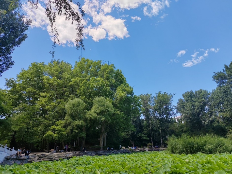 盛夏时节,碧空白云,荷塘盛景,欣欣向荣。
