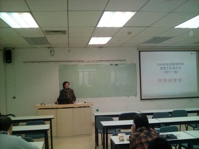 2016年12月15日中午,经管学院在新主楼A1048召开了第十一届教职工代表大会提案第二次预备会议。学院工会主席谢岚通报了提案征集和汇总情况,教代会代表们就大会提案进行了补充和讨论。