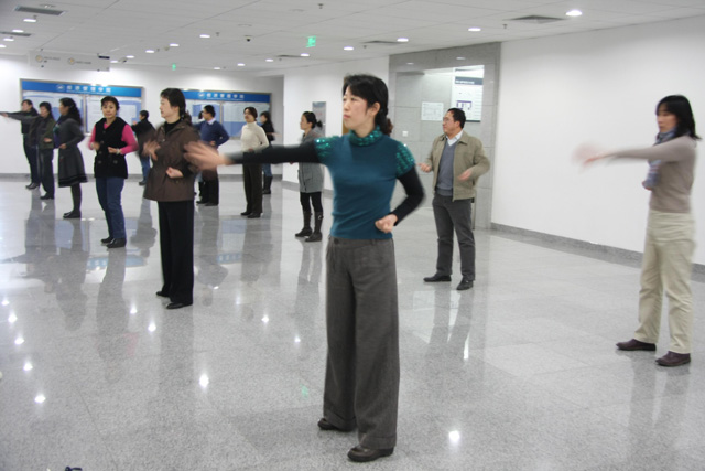 在寒冷的冬日,伴着轻柔的音乐,做完25分钟的医疗保健操,不但可以驱走身上的寒气,还会在紧张繁忙的工作之余缓解疲劳、放松精神,以更加高效的状态投入到工作中。医疗保健操活动开展了近1个月,受到了越来越多的教职工的欢迎。为了提高经管学院教职工的身体素质,欢迎各位老师给我们的全民健身活动提出宝贵意见和建议。