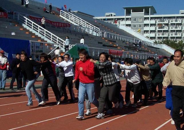 北航体育场上红旗飘飘、彩球高扬,看台上阵形整齐、人声鼎沸,二○○七年北京伊人99第四十七届学生运动会暨首届教职工趣味运动会在此隆重举行。由于大风降温,这一天秋风瑟瑟。然而,在我院行政办公室和工会的大力宣传、组织下,广大教师积极参与,近四十位教职工参与了运动会开幕式的太极拳表演及十余项集体和个人比赛项目,并取得了女子团体总分第7名的好成绩,充分展现了经管学院全体同仁“团结奋进、合作友爱、不畏困阻、勇往直前”的精神信念。
