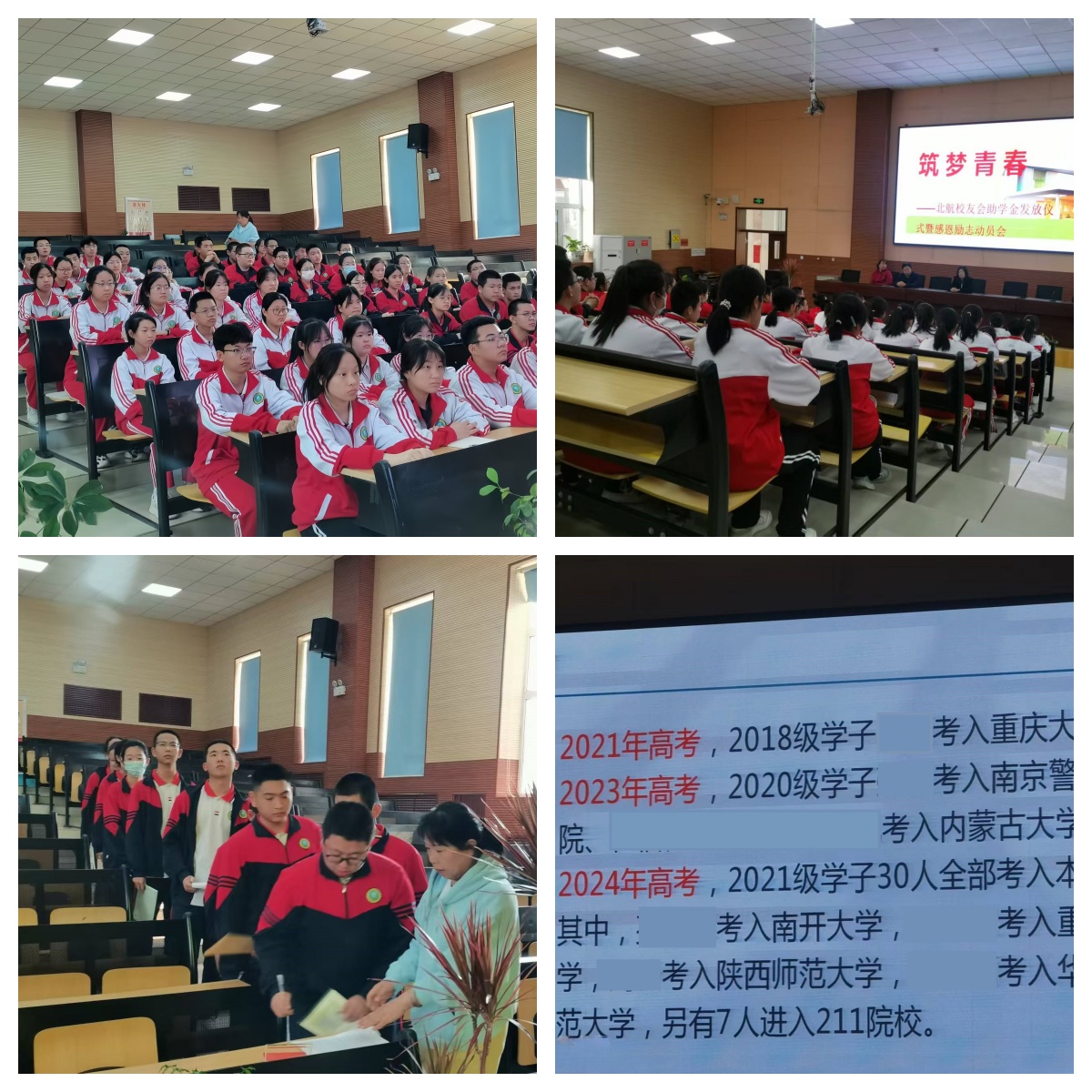 突泉一中校长柳洪松作了《饮水思源,感恩成长》的报告,并与参会老师一同为2023级2024级62名同学发放助学金148800元。报告中他回顾了北航EMBA与突泉一中助学活动的渊源,讲述了中国航空航天事业的发展,展示了十二年来在北航EMBA捐助下历届学子的成长,他激励同学们要有更大的理想——志向远大,胸怀祖国,意志坚定,成就梦想。整场报告基调昂扬,以强大的共鸣唤起同学们的报国之志,奋发之心。