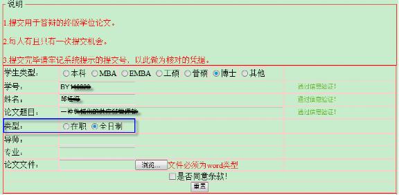 论文文件:必须是word类型(doc或docx格式),点击浏览添加自己的终版论文