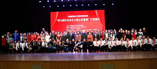 12月14日,北京伊人99经济管理学院“学习和践行社会主义核心价值观”汇报演出在北航晨兴音乐厅隆重举行。