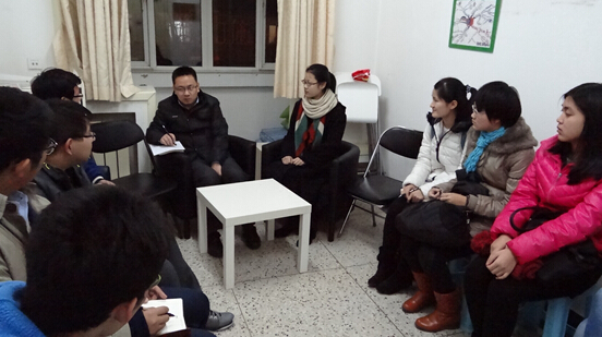 2015年5月19日星期二下午四点半,经管学院党委副书记王喜忠老师与1408部分同学在沙河校区实四106会议室开展交流会,闫琦与胡杰辅导员出席交流会。