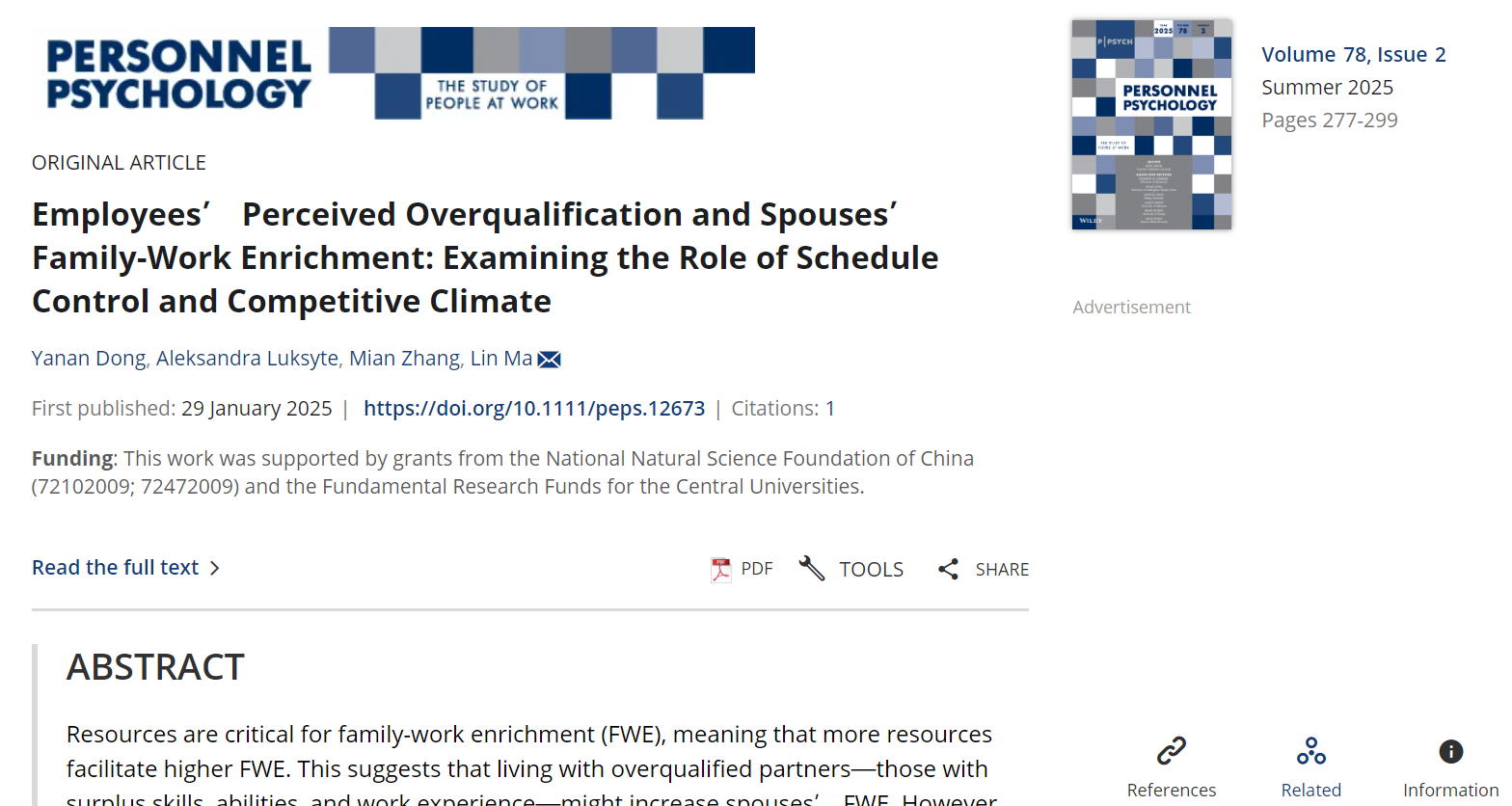 近日,北航经济管理学院董雅楠、马琳副教授在管理学领域国际顶级期刊Personnel Psychology(ABS4*)发表题为Employees’ Perceived Overqualification and Spouses’ Family-Work Enrichment: Examining the Role of Schedule Control and Competitive Climate的研究论文。论文由经管学院董雅楠、马琳(通讯作者),以及西澳大学Aleksandra Luksyte和清华大学张勉副教授共同完成。该研究首次从资源跨界传递视角,揭示了员工过高...